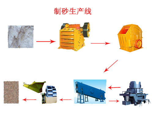 制砂生產(chǎn)線有振動給料機、顎式破碎機、制砂機、振動篩和膠帶傳輸機等設(shè)備組合而成。根據(jù)不同的工藝要求,各種型號的設(shè)備進行組合,滿足客戶的不同工藝要求。